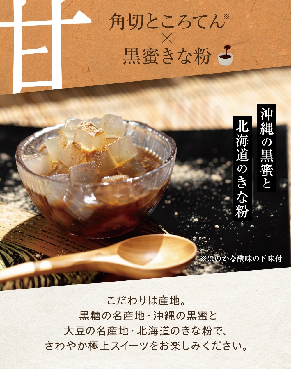 内容量:ところてん100g、豆20g、餡50g、黒蜜20g、黄粉3g