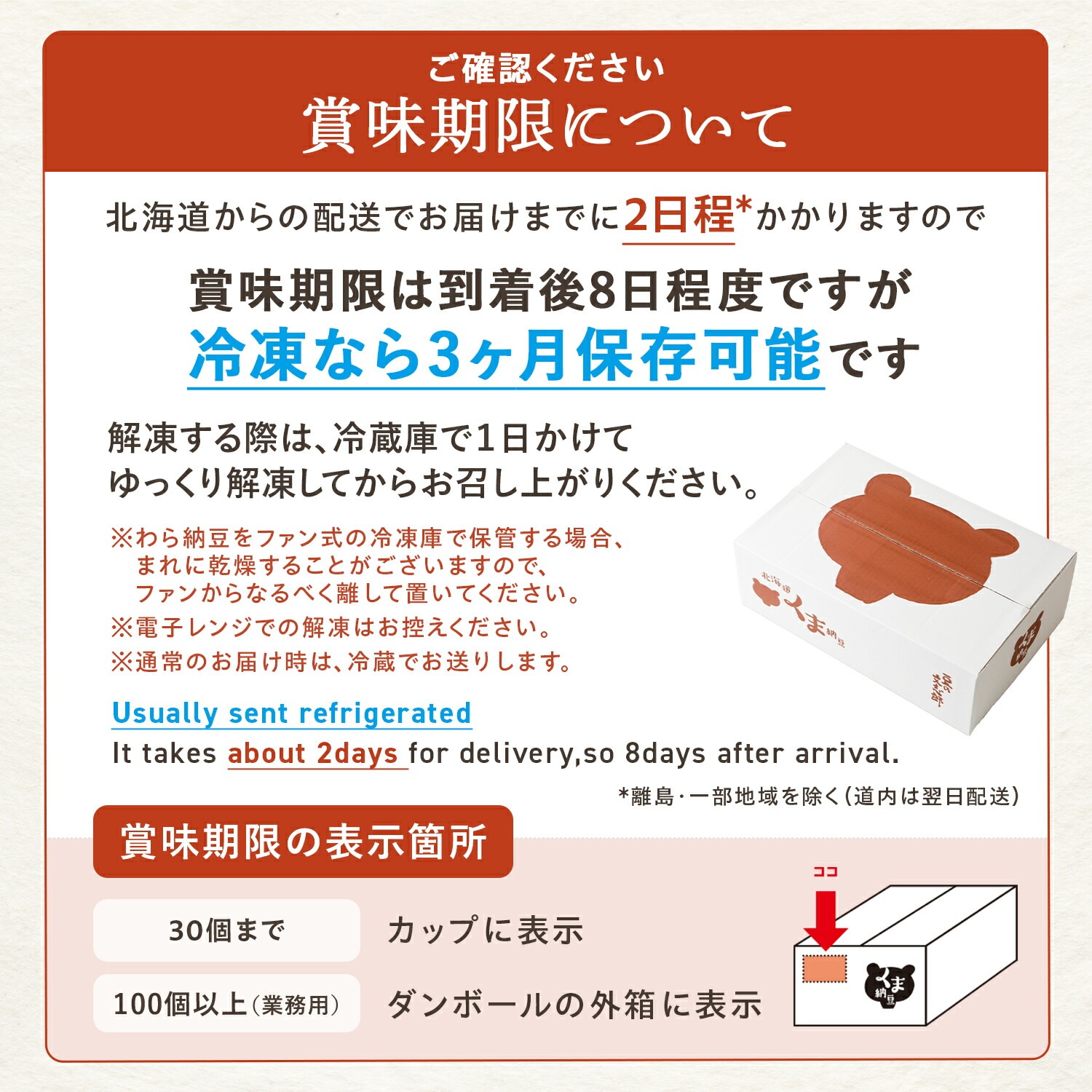 ・原材料名:【納豆】丸大豆(北海道産、遺伝子組み換え混入防止管理済)、納豆菌